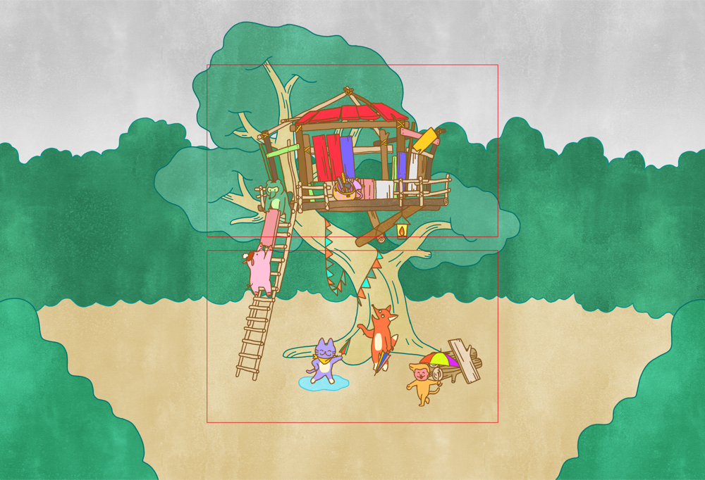 こぶたぬきつねこ アニメーション&背景画